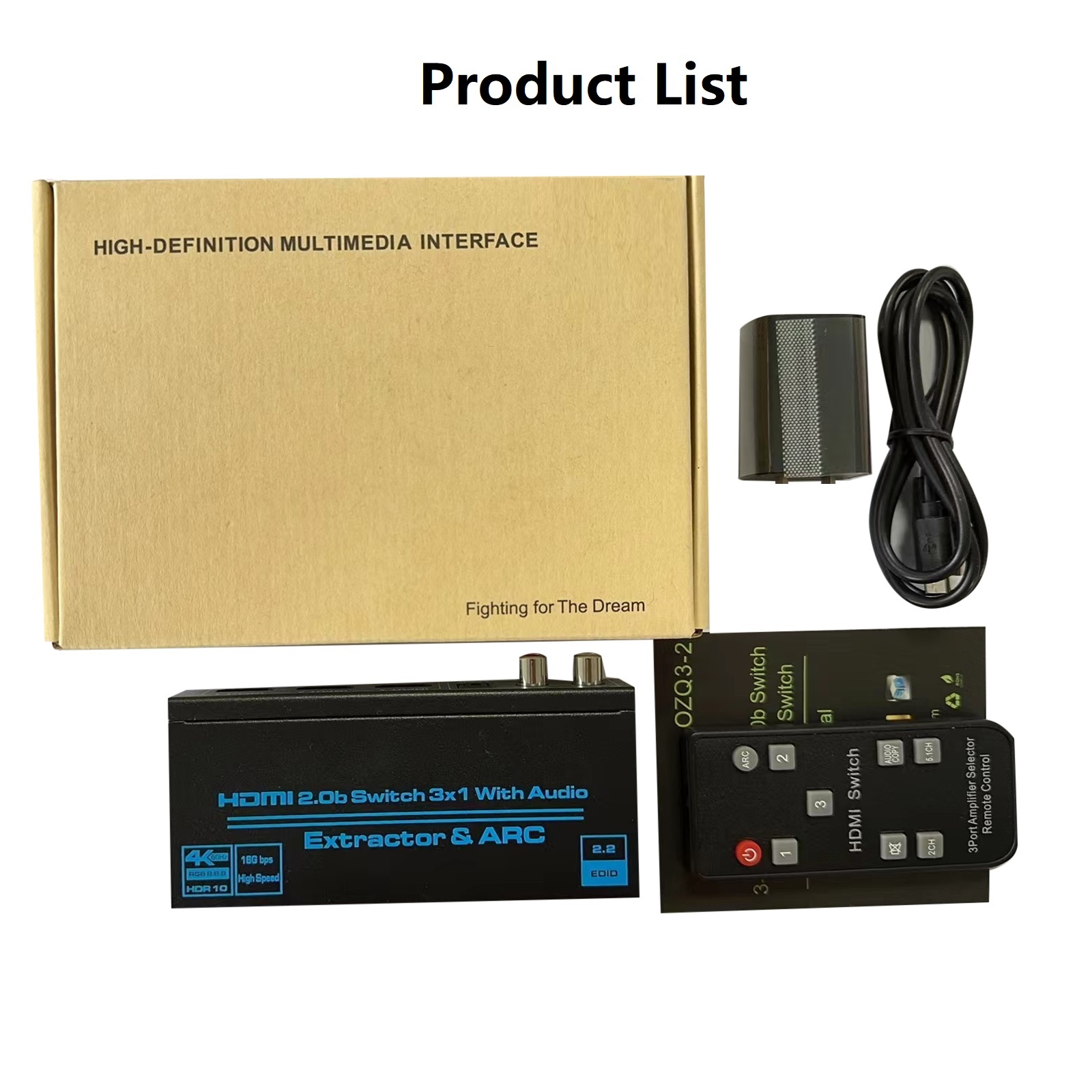 3 In 1 Out 4K HDMI Switcher HDMI Switch 3x1 With Audio Extractor HDMI Switch Audio Extractor With 3.5mm Jack For PS4 TV