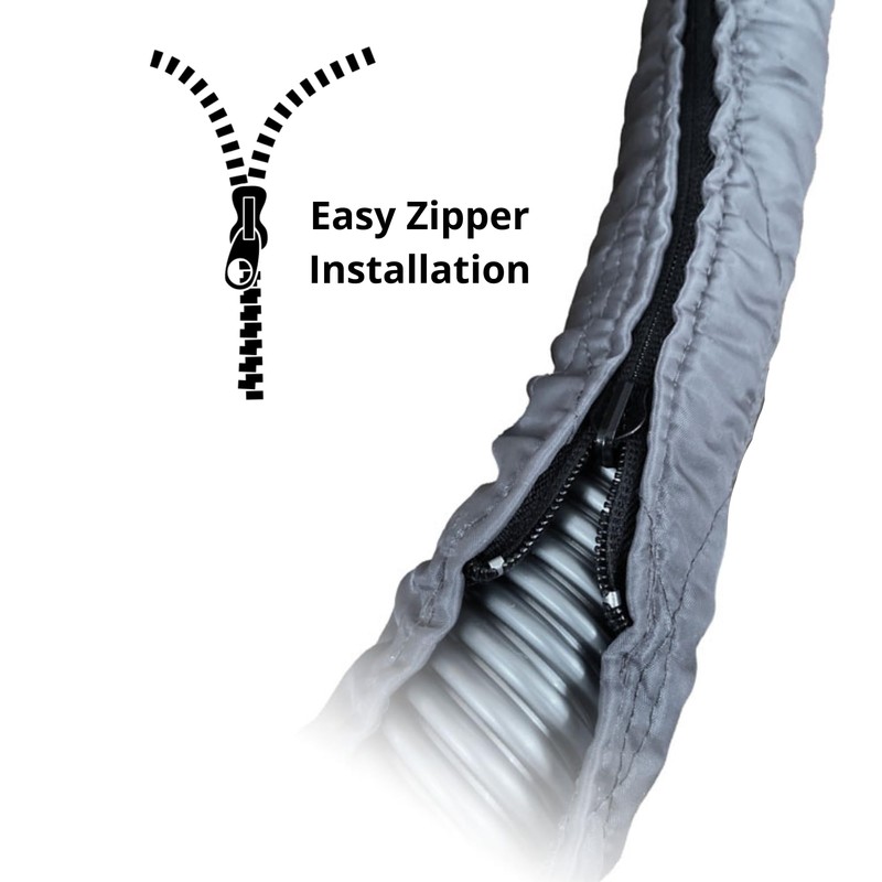 Universal 30 Central Vacuum Hose Cover - Padded, Machine Washable, Easy Install with Zipper - Stylish Grey Protection for Your Vacuum System