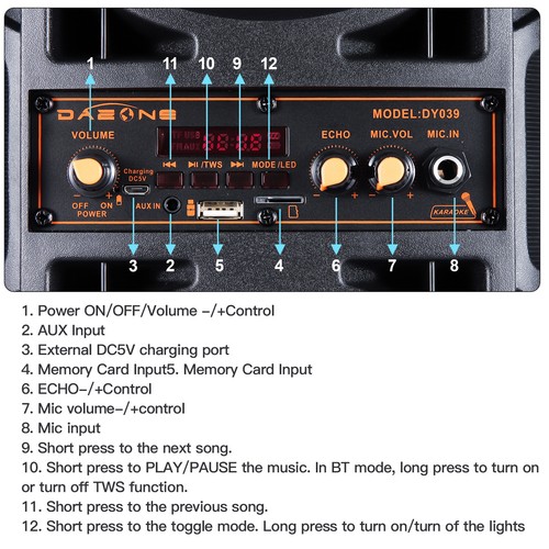 - 1×10W Dual 6.5'' Bluetooth speaker