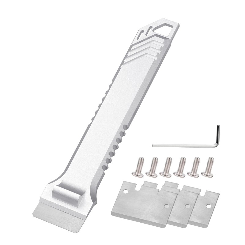 - Product size and inclusion:the Handle size is 161.6mm x 32.7mm,and the scraper blades is 23mm x 32mm. package include: 1pcs handle, 3pcs scraper, 6pcs screw and 1pcs 2.0 Hexagon Wrench