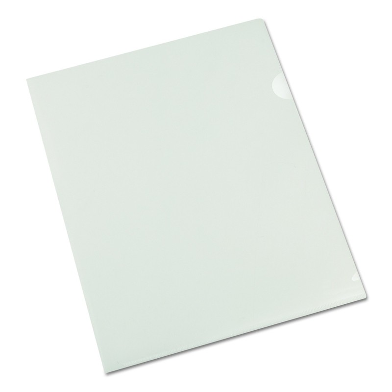 - Clear polypropylene folders organize documents.