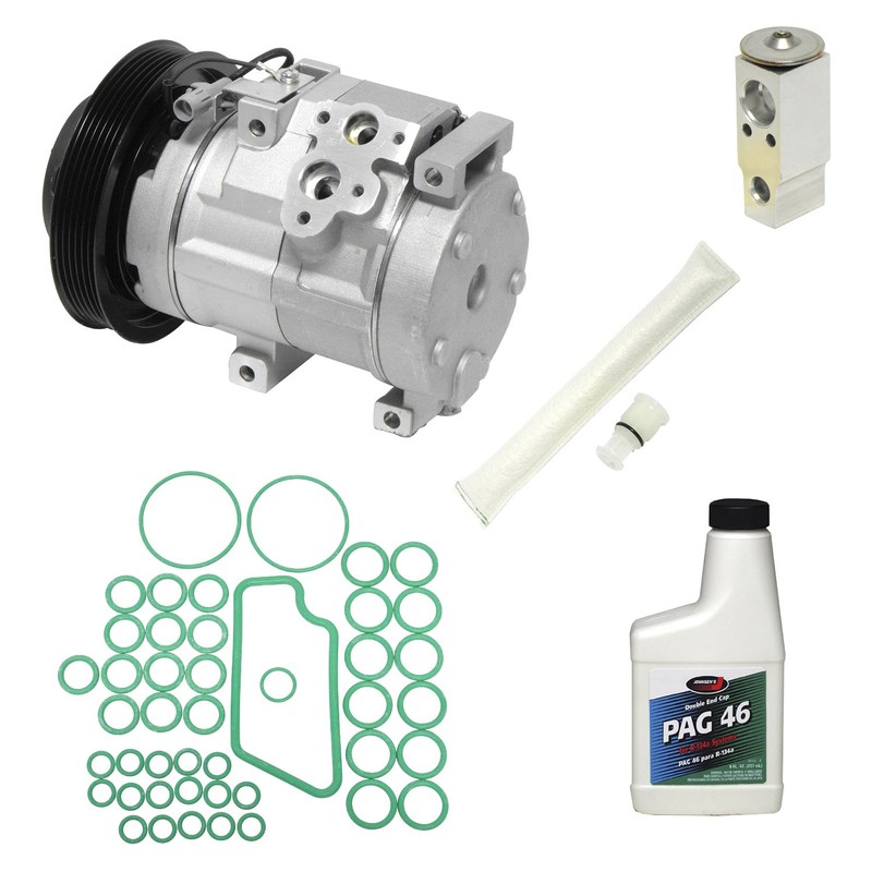 - Includes: compressor & clutch, drier / accumulator, expansion device, 8oz bottle of PAG oil, seal kit; compressor may come charged with shipping oil to keep the part lubricated during transit - drain and replace according to your system's requirements