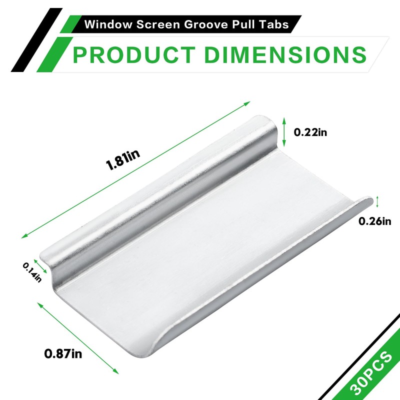 - 30-Pack Universal Replacement: Get 30 pieces of high-quality window screen pull tabs designed specifically for Flat Groove Window Screen Clips (C-Shaped). Measures 1.8" L x 0.95" W x 0.25" H, perfect for channels deeper than 0.23" and wider than 0.13".