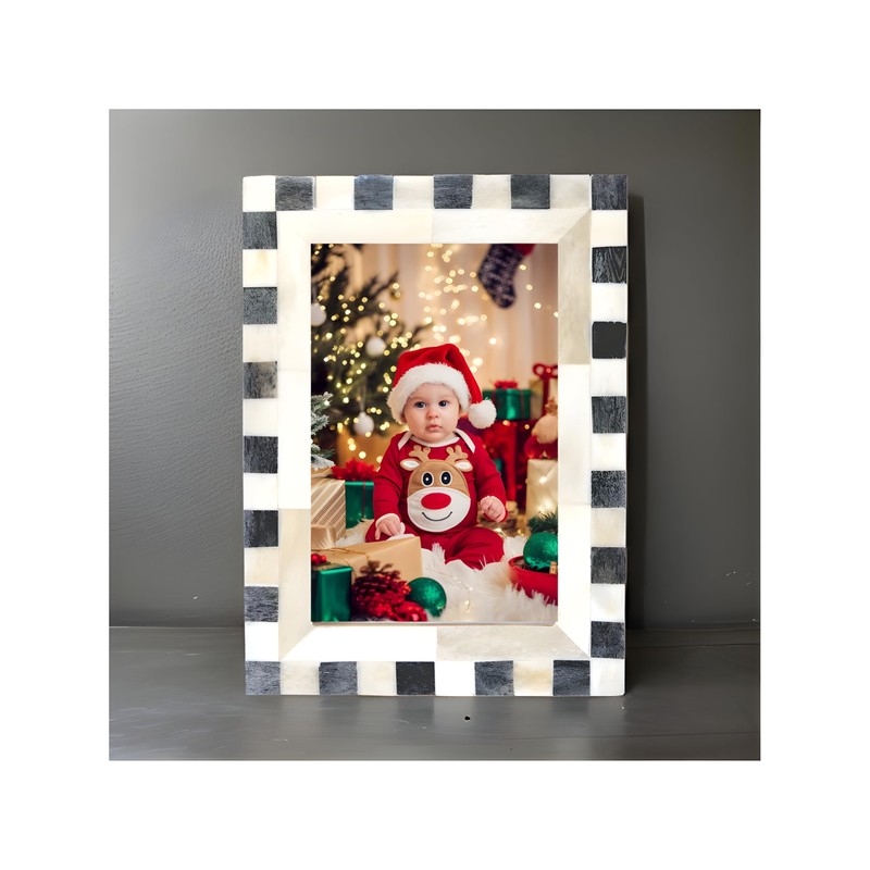 UNIVERSAL ART CRAFT Handmade Bone Photo Frame – 4x6 Inch Elegant Decorative Frame for Home & Office (White And Grey Striped)