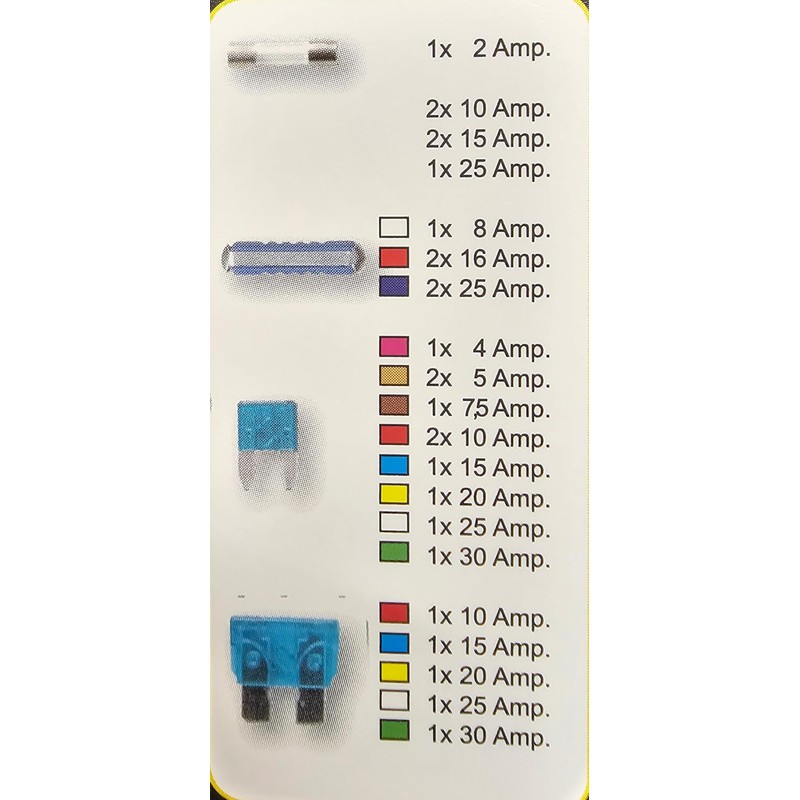 - VERSATILE SELECTION: Includes mini blade fuses in multiple amperage ratings with colour-coded housings for easy identification