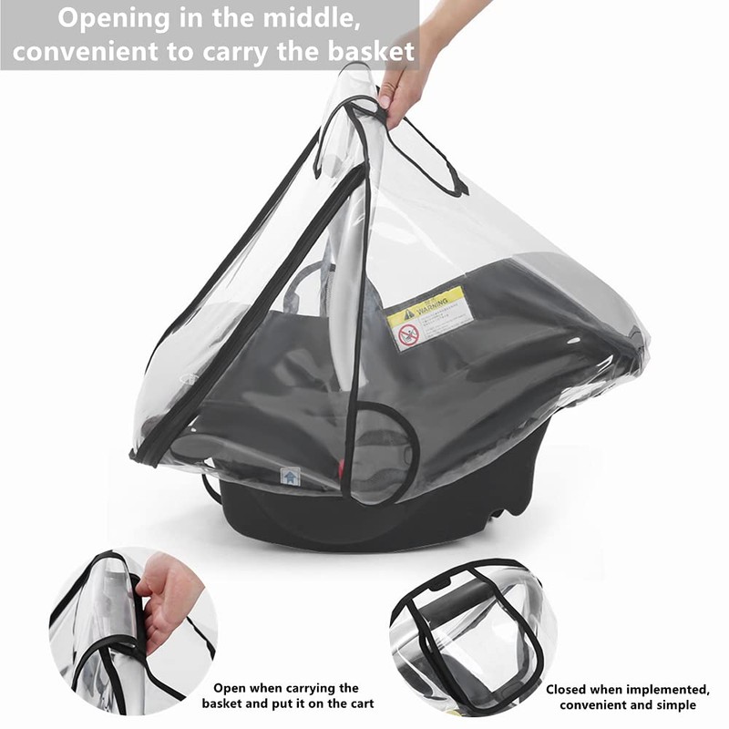 - Safe and durable transparent material: The rain cover is made of high-quality materials EVA. No peculiar smell, soft touch, does not wrinkle. General car seat rain cover is a must-have for parents to travel with their baby, giving the baby the best care in a safe environment. Suitable for the entire infant development period.