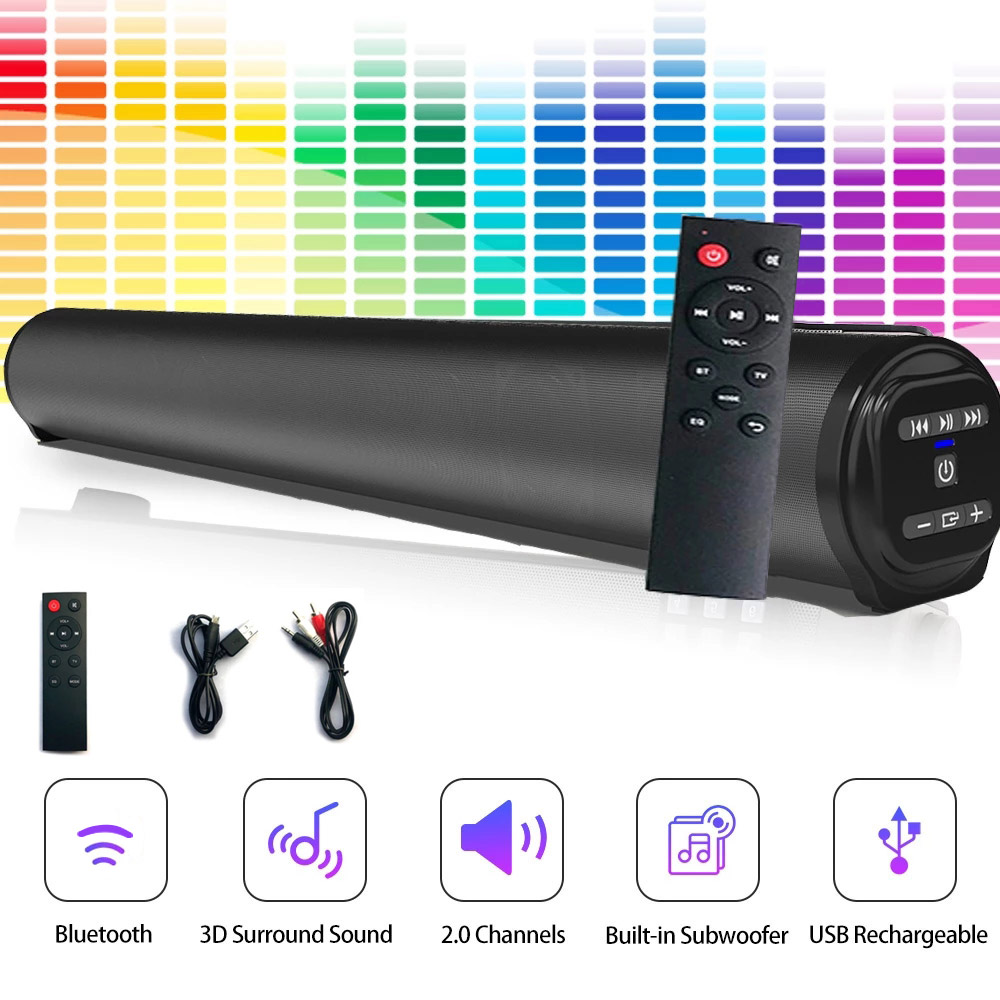 【Remote Control】Playback settings can be conveniently adjusted via either the buttons on the bluetooth soundbar or by using the remote control, just sitting on the sofa and enjoy the amazing music or movie.