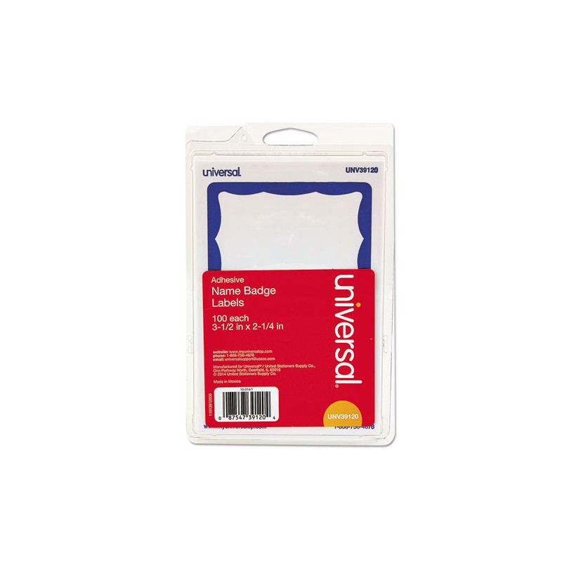 Universal Border-Style Self-Adhesive Name Badges, 3 1/2 X 2 1/4, White/blue, 100