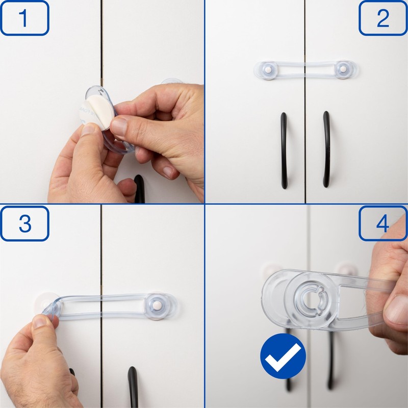 - Universal latch closure with large adhesive surface and strong special adhesive - ensures a firm hold - Secure all problem areas in the home, apartment, nursery, day care etc.