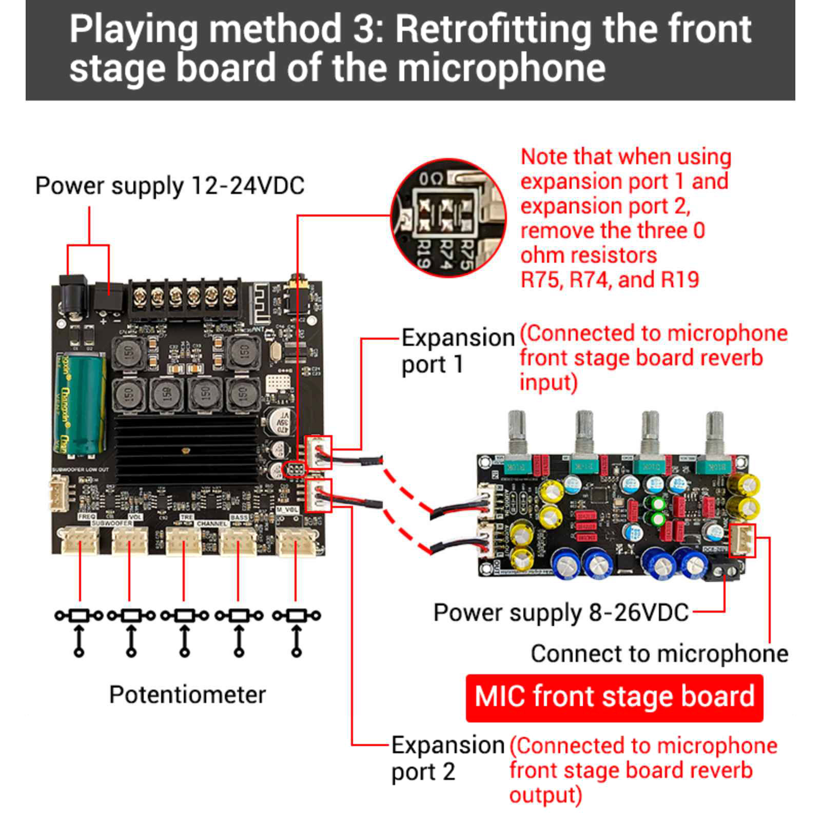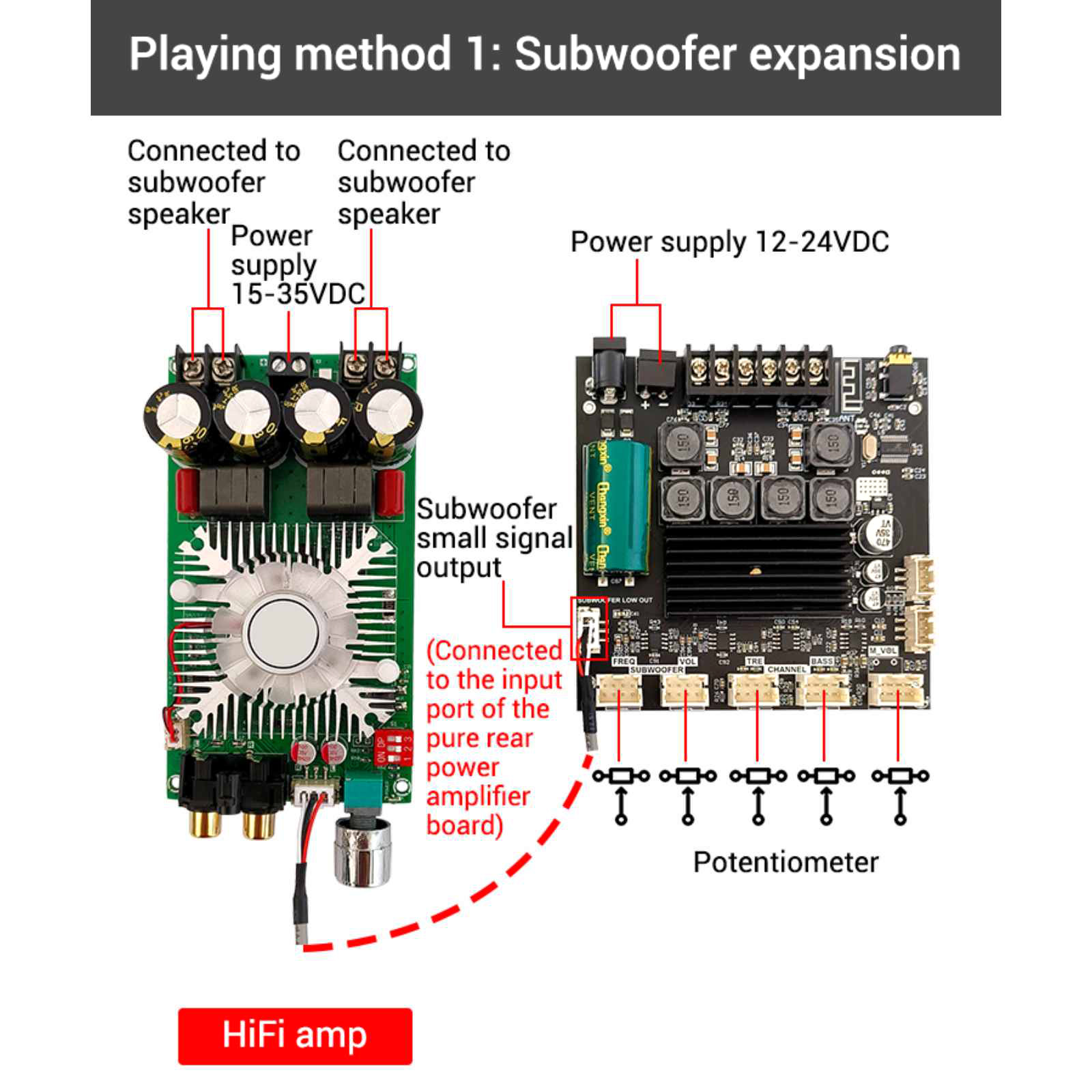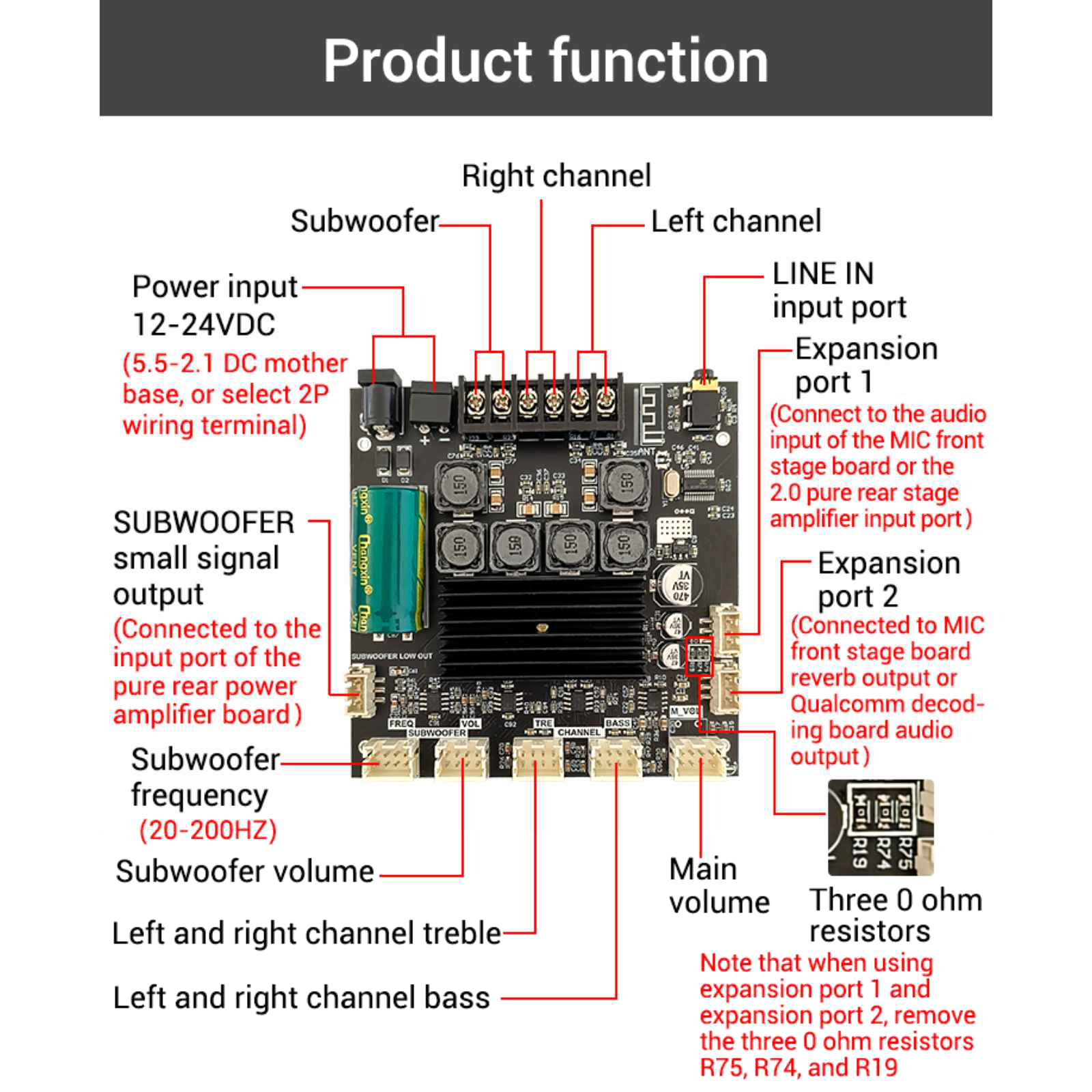 Enhanced Versatility: Supports subwoofer expansion and the addition of a microphone preamp board, enabling more rich and diverse audio experiences.