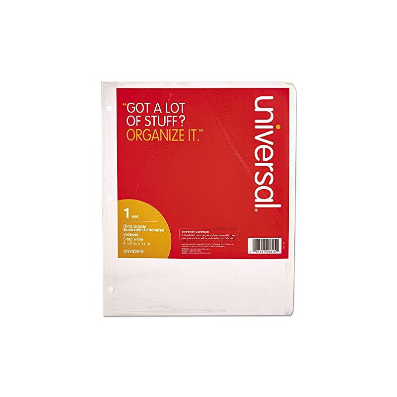 - Universal Deluxe Write-On/Erasable Tab Index UNV20815 5/pk