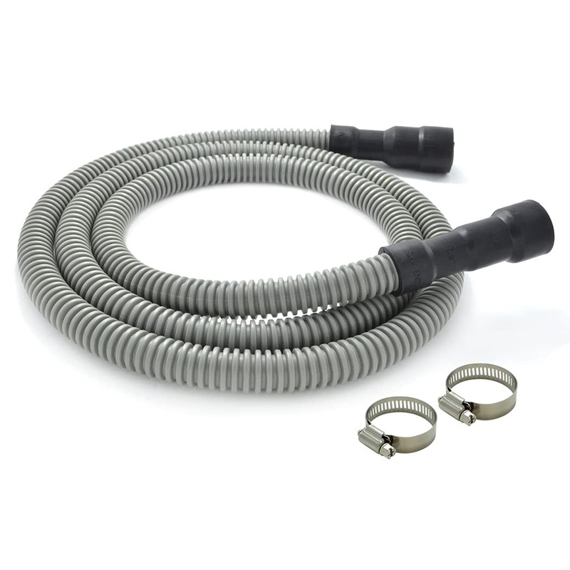 - EASY INSTALLATION: Simply trim the formed end of the dishwasher drain hose to the desired size.Then screw the hose clamp as tight as possible with your dishwasher.Easy-to-attach steel clamps included.
