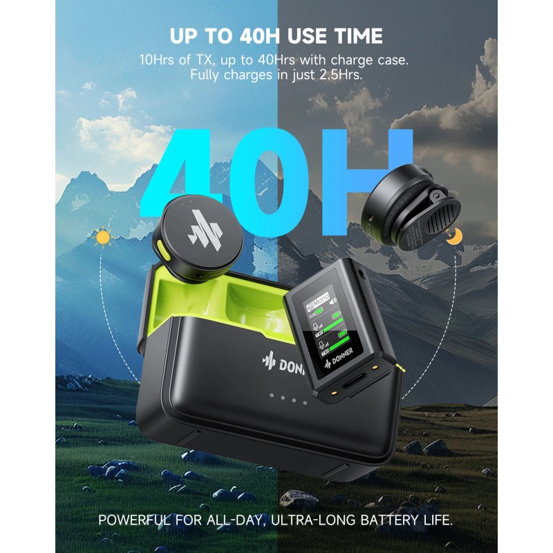 - [ Ultra-long Battery Endurance, All-day Recording ] VPM-20 lavalier microphone can work for up to 10 hours. The charging case can fully charge the entire set three times, and each charge takes 2.5 hours. With the charging case, The VPM-20 can be used for up to 40 hours in total. No more worrying about the low battery situation out of the home.