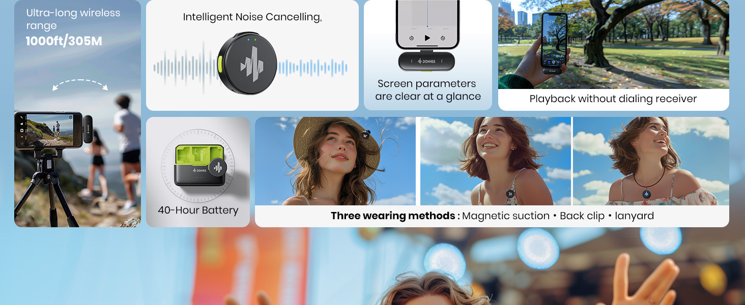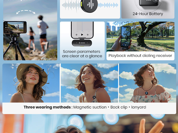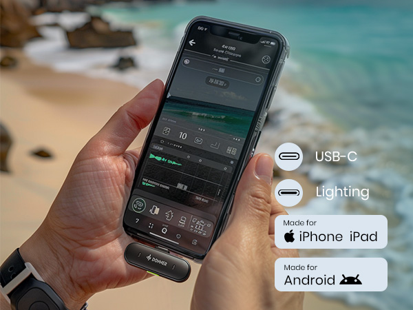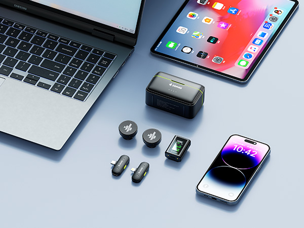 - [ Ultra Portable, with Newly Functional Display ] VPM-20 owns new-upgraded unprecedented functional display which makes your adjustments at a glance. It features portability and extensive compatibility. Two Lavalier Microphones are only 9g in weight and 29mm in diameter each. It's equipped with USB-C, Lightning, and camera TRS interfaces, compatible with various devices. Easy to connect to each generation iPhone/iPad, Android/tablets, and professional cameras. The plug-play let you start creating without worry.