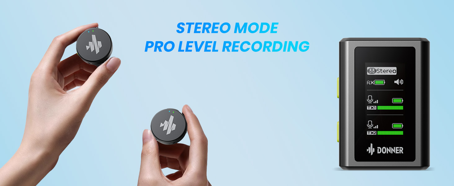 - [ Mono and Stereo Switch Smoothly ] The receiver of the VPM-20 camera version supports mono and stereo two recording modes. You can switch between them by pressing the Mode Switching & Pairing button on the receiver. ( Note: The receiver supports switching between two modes only when connected to the camera through the 3.5mm audio jack). Two transmitters with dual channels, make your post-production easier.