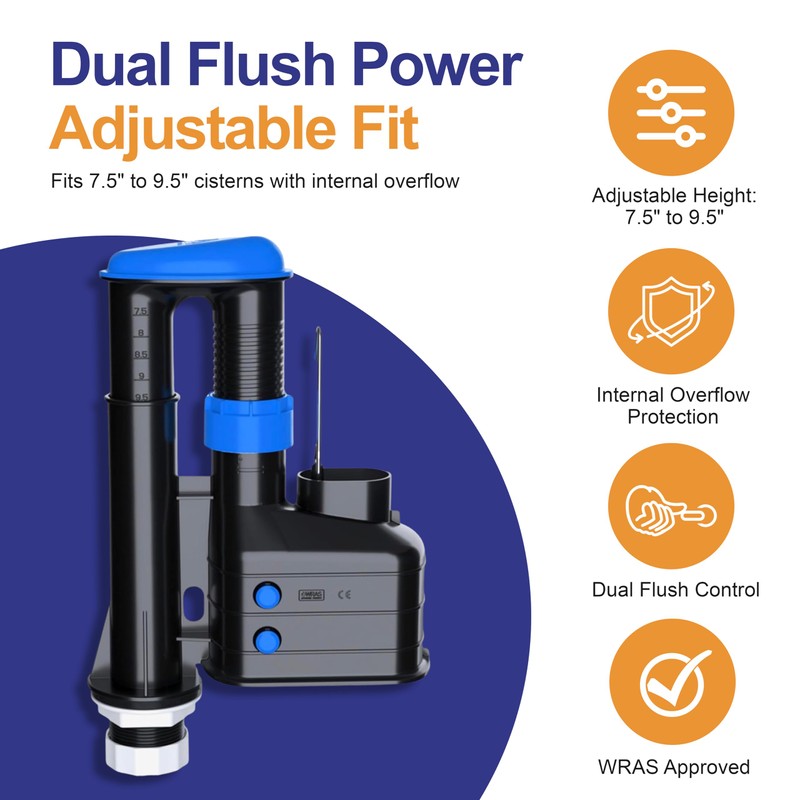 - Easy Flush Replacement: With standard 1½" BSP connection, this universal dual flush toilet syphon is adjustable 7.5"–9.5" for a precise fit across various toilet cisterns—ideal toilet flush system replacement.