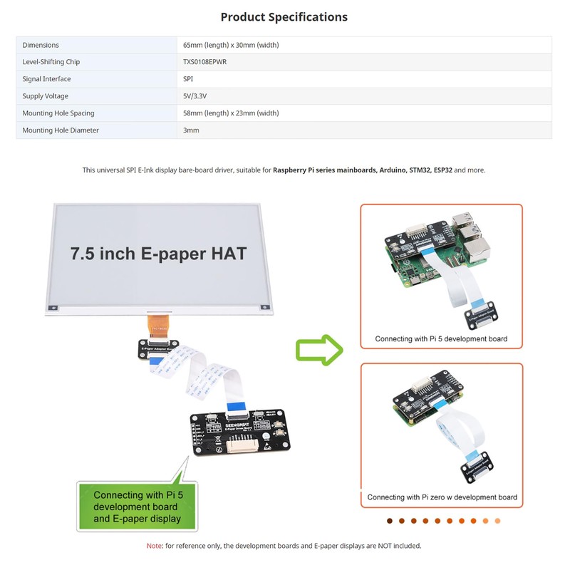 - Wide Compatibility: Designed for Raspberry Pi series, Arduino, STM32, and ESP32 platforms, this universal E-Ink driver board connects effortlessly through a 40-pin GPIO or SPI interface for versatile e-paper applications.