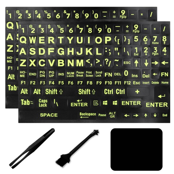- 【SPECIALLY DESIGN FOR】The Black Background with Bright Yellow Lettering Keyboard Stickers are compatible with Almost all desktops keyboard, laptops keyboard, Notebooks keyboard, Wired keyboard, wireless keyboard Stickers