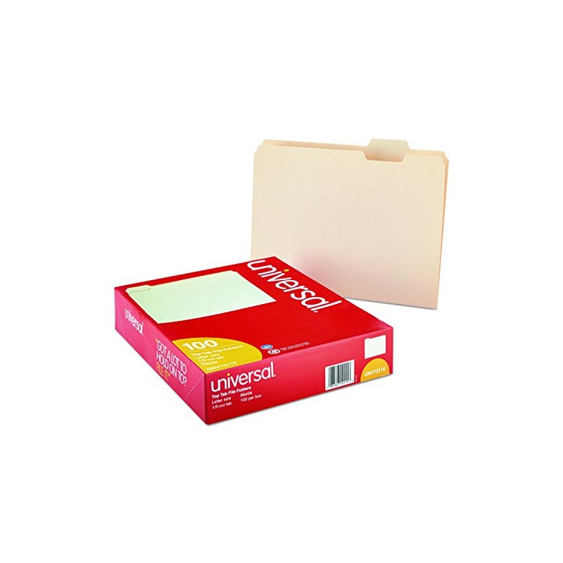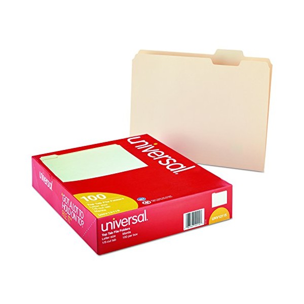 Universal File Folders, 1/5 Cut Assorted, One-Ply Top Tab, Letter, Manila, 100/Box (12115)