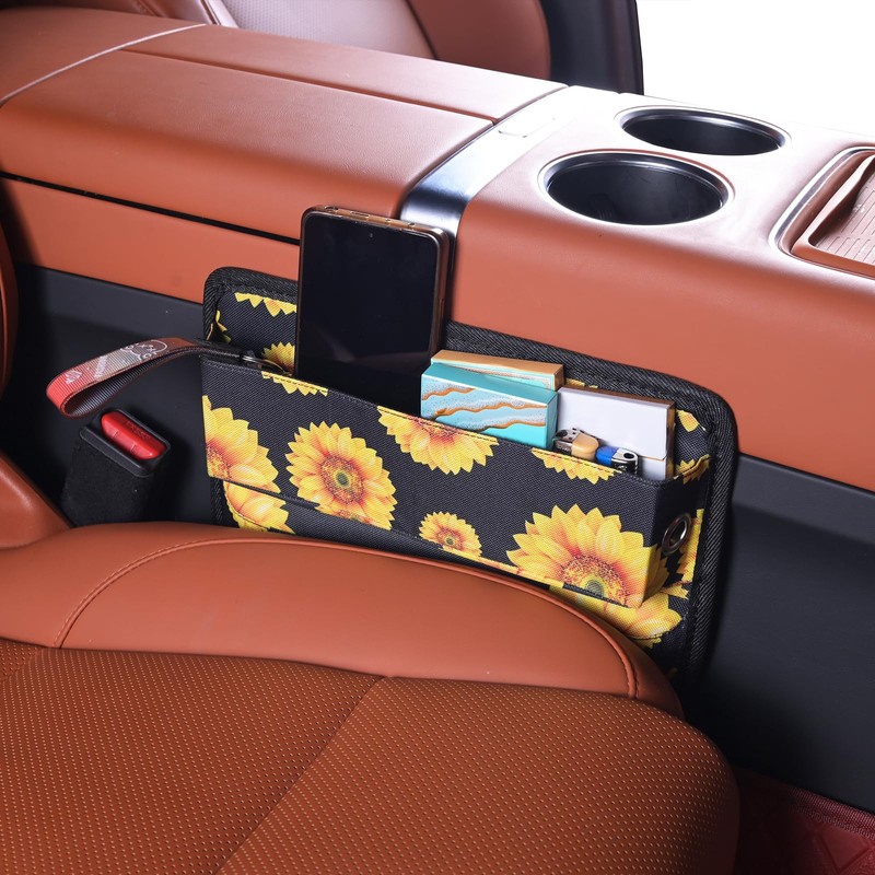Universal Fit Car Seat Gap Filler Organizer Front Seat Set Divider Crevice Pockets Storage Box Auto Interior,Prevent from falling through gaps,Holds Glasses Phone key (1, Sunflower pattern)