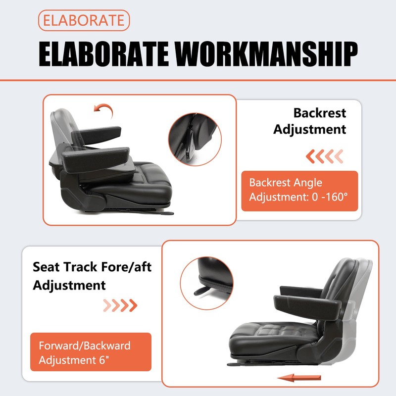 - 【Applicable scene】:This seat is designed for most of heavy mechanical seat, such as fork lifts, dozers, aerial lifts, floor scrubbers, riding mowers, tractors, Construction equipment,excavator and trenchers.