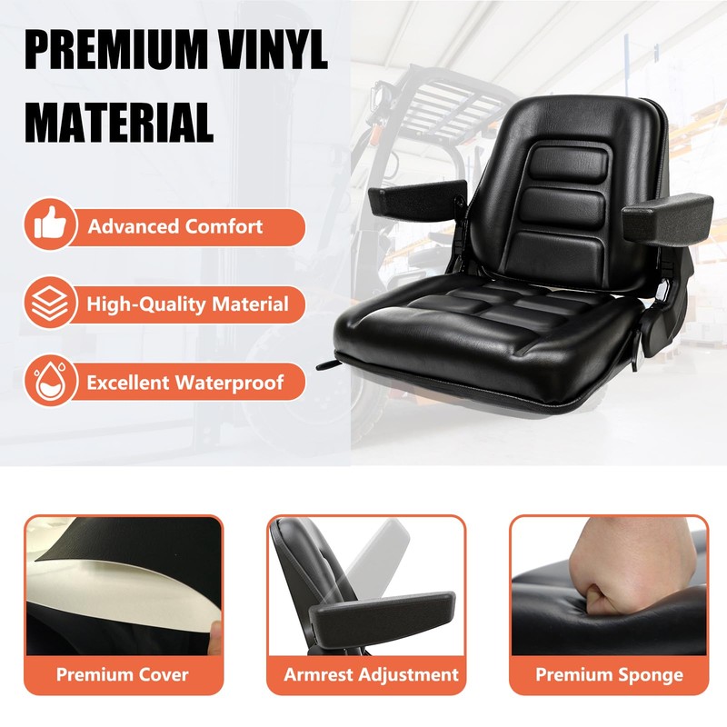 Universal Fold Down Forklift Seat with Adjustable Angle Back,Armrest,Micro Switch and Slide for Tractor,Excavator Skid Loader Backhoe Dozer Telehandler ZTR’s