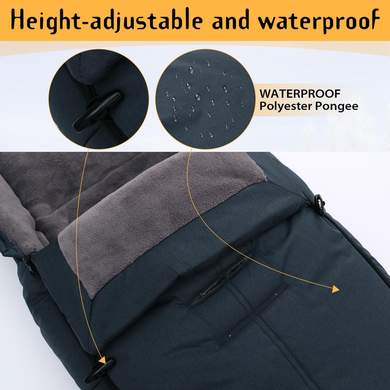 - 【Ultra Large Size】 The baby bunting bag is suitable for most high landscape cars, umbrella cars, and light cars. Dimensions are 100*45 cm/39.4*17.7 inches. These infant winter car seat covers have expanded length and width. Equipped with positioning notches for flexible adjustment and easy and secure fit with the stroller. Even on freezing days, your child can sleep comfortably and move around freely in the stroller, or just enjoy the outside world.