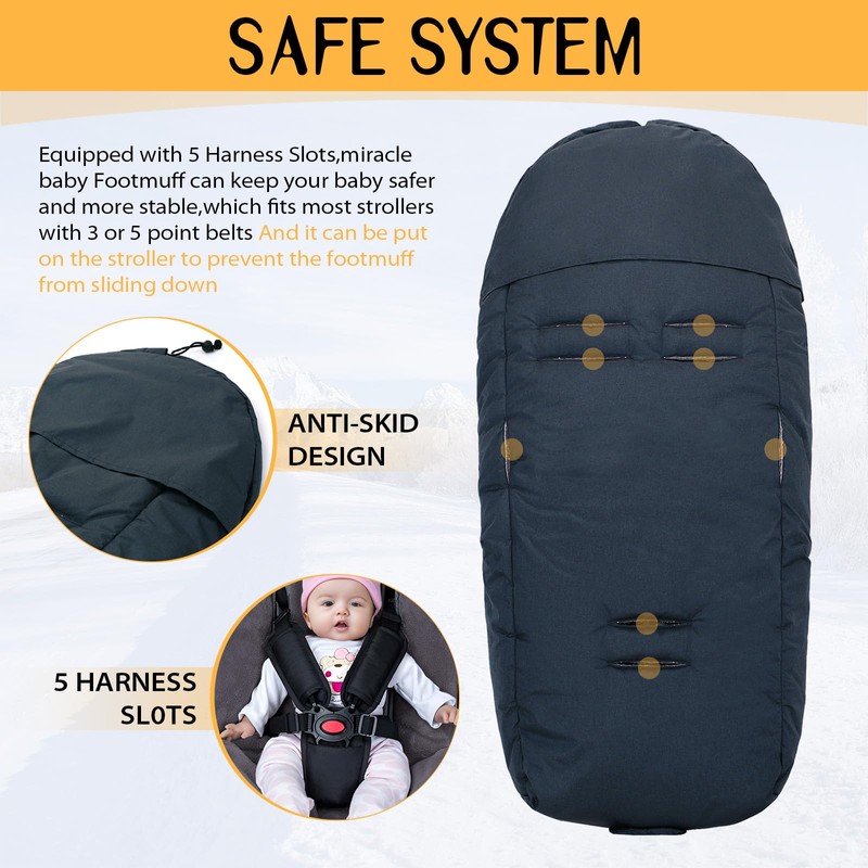 - 【Thoughtful Winter Gift】Miracle Baby warm stroller cover is specially designed for toddlers 6-36M, and can also be used for bassinets. Warm stroller foot covers are the perfect gift for parents with little ones, it's definitely a thoughtful, impressive and practical item that will warm hearts during the cold winter months. You can comfortably take your child shopping, camping, going to the beach, walking, going out and traveling. Unfolded sleeping bag can be used as a blanket or sleeping bag