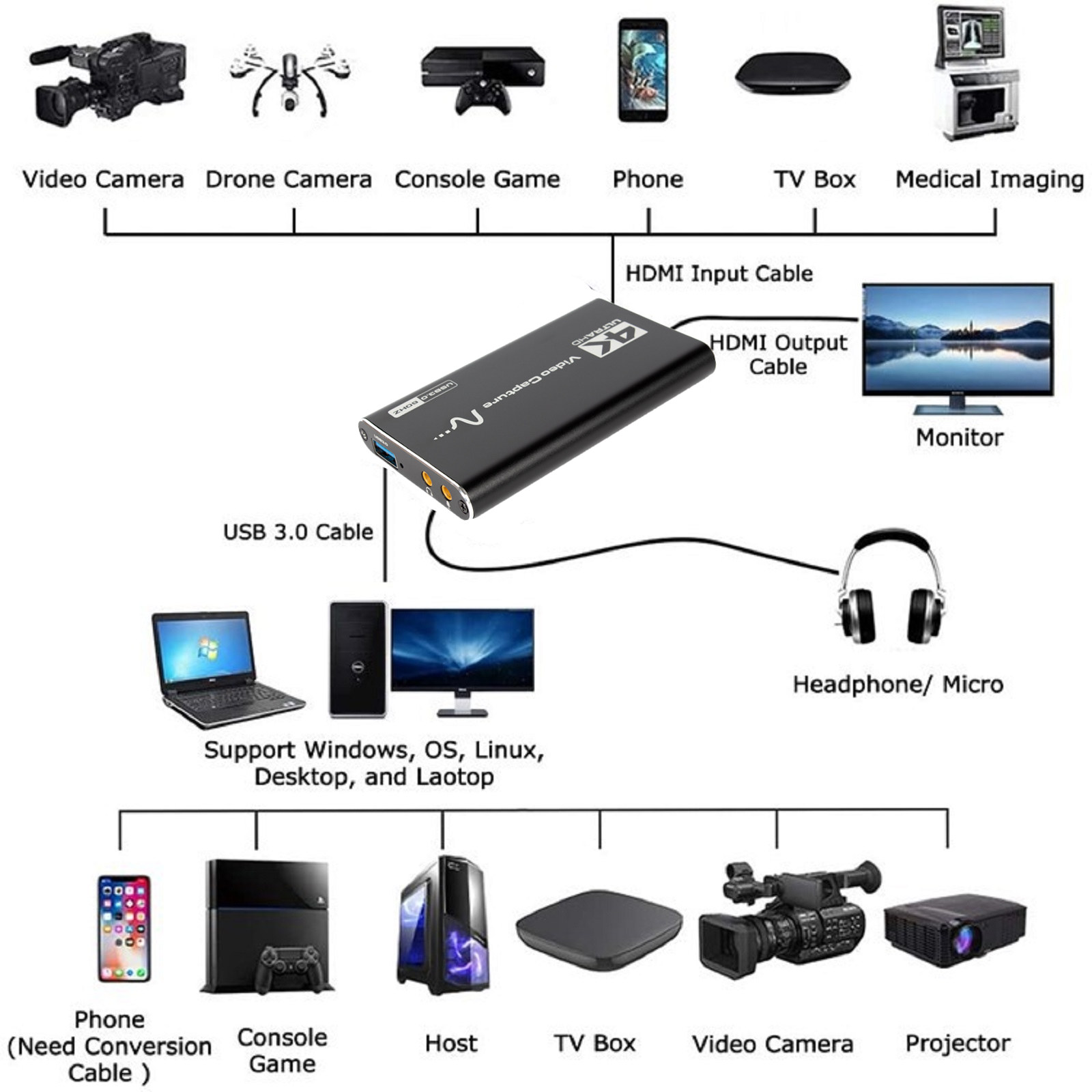 Capture video up to 1080P@60hz, Support 4K HDMI input