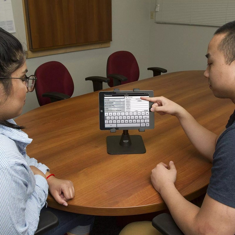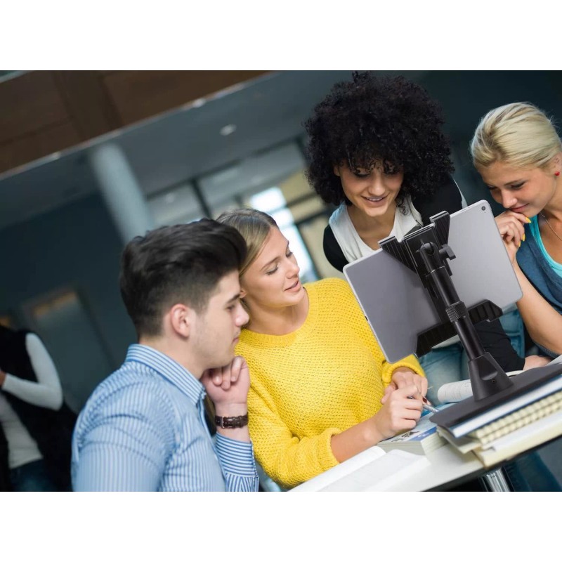 - GREAT FOR BUSINESS OR PERSONAL USE - Works with most smooth surfaces, perfect for desks, countertops, tables and more. TabStandPro mount is adjustable from 7.5” to 9.75” tall and is great for businesses, homes, or schools.