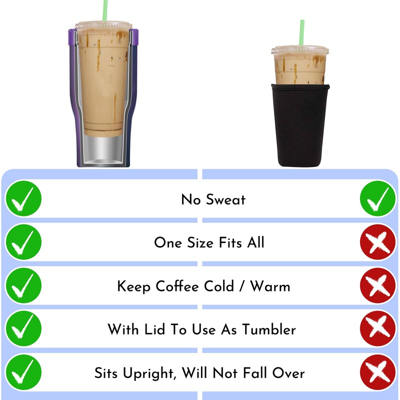 - SWEAT-PROOF - Compared to traditional neoprene iced coffee sleeve, our stainless steel sleeve is more effective in keeping your hands warm and dry. Enjoy your iced drink without desk puddles, table rings, or wet, slippery hands. Niceyos is here to make it easy!