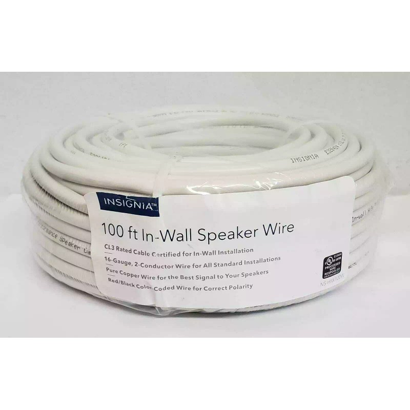 Experience quality audio transmission with this Insignia in wall speaker cable. The 16 gauge thickness ensures long lasting durability, while the pure copper construction enhances signal clarity for immersive sound. This two wire Insignia in wall speaker cable is color coded to help identify polarity quickly for simple connections, and the 100 foot length accommodates flexible setup options.