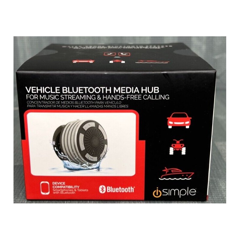Elevate your audio experience with the iSimple Vehicle Bluetooth Media Hub Speaker, model VMH501S. This portable speaker system is designed to deliver rich, high-quality sound with the convenience of Bluetooth connectivity. Effortlessly stream your favorite music or make hands-free calls from the comfort of your vehicle. Crafted for durability, the VMH501S boasts a waterproof construction, allowing for worry-free use in any weather condition. Its sleek black and gray design ensures it complements the interior of your car while its universal compatibility makes it a versatile choice for any driver.