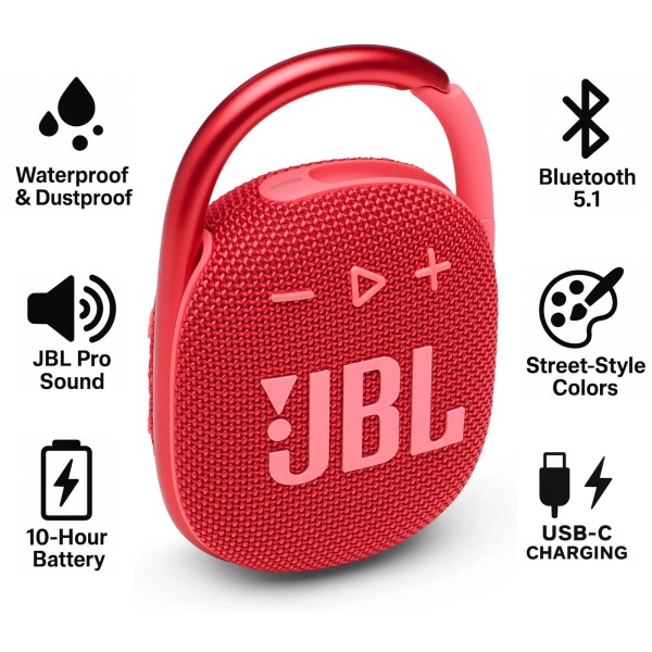 Universal JBL Clip 4 Portable Bluetooth Speaker Waterproof Wireless Rechargeable – Red