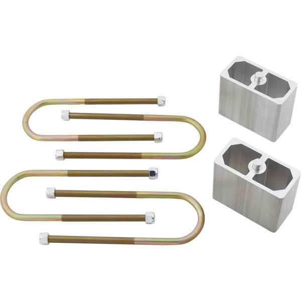 Speedway Motors Universal 4” Leaf Spring Lowering Block Kit, Fits Rear Axle on Top of Leaf Springs, Includes Extruded Aluminum Blocks, Zinc-Plated U-Bolts and Installation Hardware