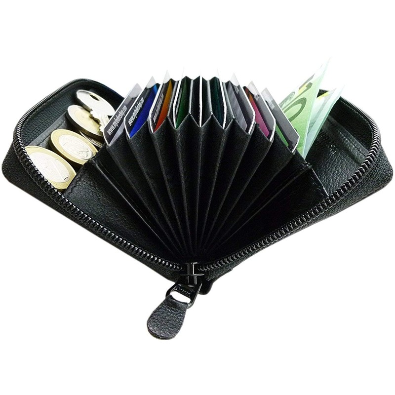 Universal Leder Kreditkartenetui und Geldbörse / Geldbeutel / Portemonnaie / Portmonaise / Geldtasche / Portmonee in Schwarz oder Rot (Schwarz)