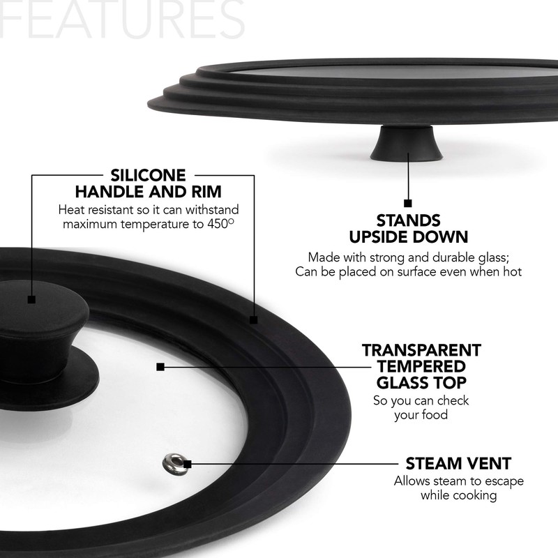 - ★ Modern Innovations Silicone Universal Lids: These remarkable tempered glass universal lids were specially designed to fit all your pots and pans perfectly. No more rummaging through the kitchen cabinets to find the right lid.