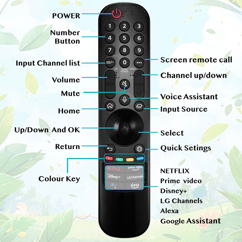 - 【6 Shortcut Buttons】 Quick access to popular streaming services like Netflix, Disney+, Prime Video, LG Channels, and more with dedicated shortcut buttons. No more tedious menu navigation—stream your favorites instantly.
