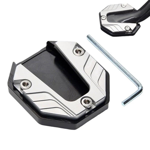 Universal Motorcycle Kickstand Pad CNC Side Stand Silver Tone