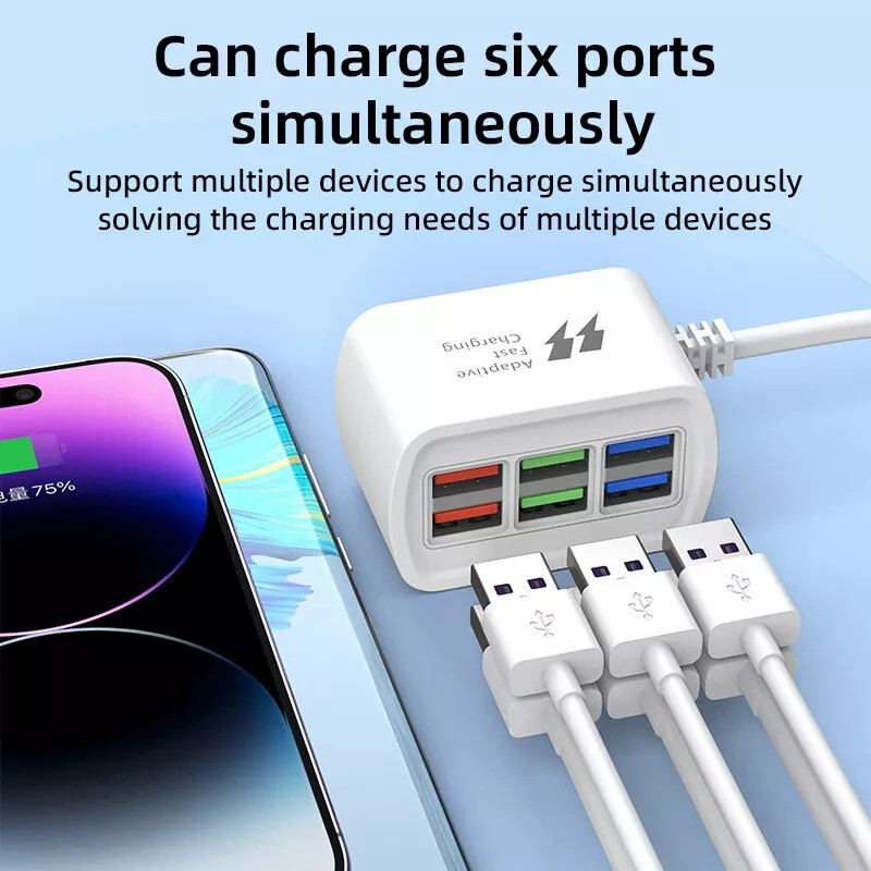 Universal Multi 6 Port USB Hub Wall Charger Station Fast Charging AC Power Adapter Desktop