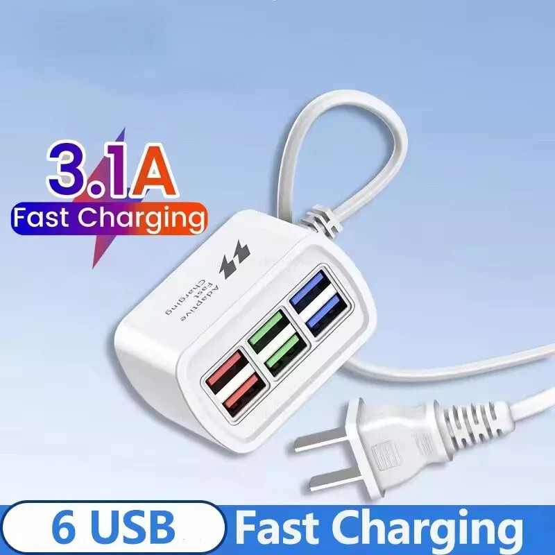 Universal Multi 6 Port USB Hub Wall Charger Station Fast Charging AC Power Adapter Desktop