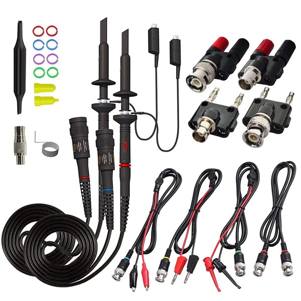 Universal Oscilloscope Probe with Accessories Kit 100MHz Oscilloscope Clip Probes with BNC to Minigrabber Test Lead Kit (Black 10pcs)