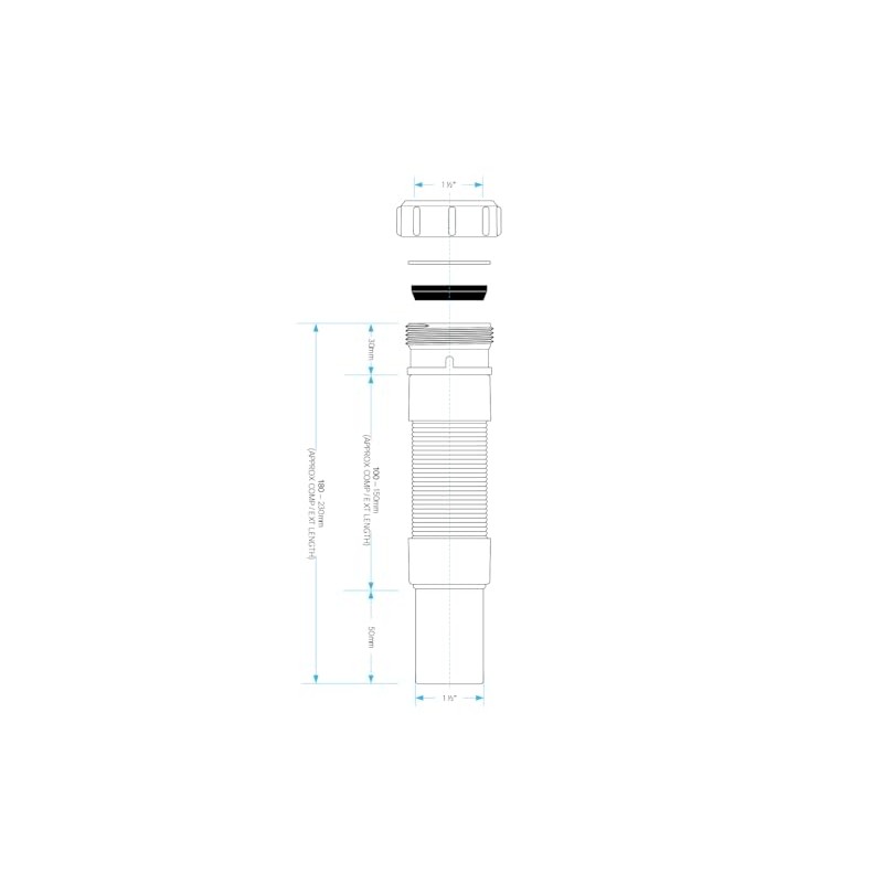 Introducing the Universal Outlet Flexible Waste Connector with a Plain End Suitable for Compression, an essential component for seamless plumbing solutions. Designed specifically to accommodate a 1 1/2 inch sink waste, this versatile product is the ideal choice for caravan waste pipe connectors, shower waste trap and other waste pipe fittings. Our connector is engineered to provide a reliable and durable connection for various under sink pipe fittings, making it a top choice for both residential and mobile installations. Manufactured to fit a 40mm pipe, the Universal Outlet Flexible Waste Connector is crafted to ensure compatibility with a wide range of plumbing systems. The flexible nature of this connector allows it to adapt effortlessly to any under sink plumbing kit, serving as a flexible pipe connector that assures ease of installation and maintenance. Whether you're dealing with a kitchen sink waste fittings or bath waste fittings, our product is designed to transition smoothly, reducing the need for additional adjustments or modifications. This connector is a perfect fit for kitchen sink waste traps and flexible basin waste applications, offering a seamless connection that prevents leaks and ensures efficient waste disposal. Its adaptability extends to a variety of scenarios, functioning as a flexible bath waste pipe or a flexible shower waste pipe 40mm, making it a versatile choice for a myriad of waste management needs. The 40mm flexible waste pipe fittings included in our design facilitate quick and easy installation, ensuring that your plumbing projects are completed with minimal disruption. As a flexi pipe 40mm, it boasts high-quality materials that guarantee long-lasting performance and reliability, even under demanding conditions. Perfect replacement for mcalpine Flexcon6 flexcon waste. Whether you require a kitchen sink u bend or a shower tray waste connection, our flexible pipe is engineered to meet your needs. It serves as a flexi waste pipe connector, ensuring a tight seal and efficient drainage. Moreover, the flexible waste water pipe is ideal for various applications, acting as a flexible plumbing pipe for both residential and mobile environments. Choose the Universal Outlet Flexible Waste Connector for its adaptability and efficiency. It is the perfect solution for your plumbing waste fittings, offering a seamless fit for any waste outlet connection kit. Its versatility extends to functions as a flexible sink drain pipe, flexible sink waste pipe, and flexible waste trap. Equip your home or caravan with the best flexible drainage solutions and experience the convenience of a reliable plumbing system. Plain End Suitable for Compression
