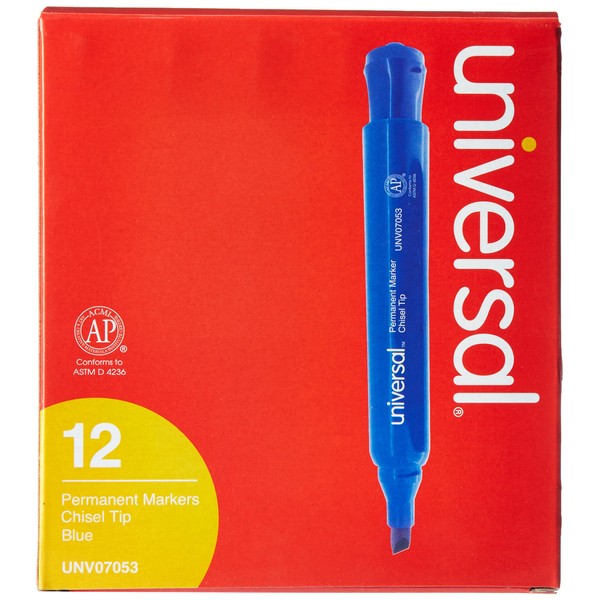 Universal Permanent Markers, Chisel Tip, Blue, Dozen (UNV07053)