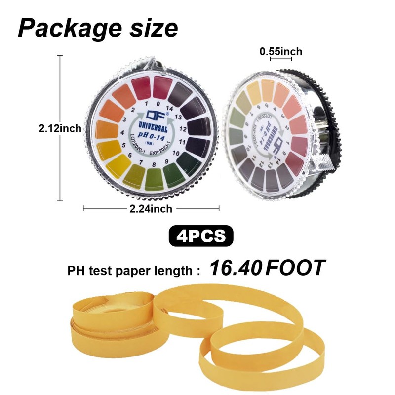 Universal pH Test Strips Roll - 4 Rolls 16.4ft, 0-14 pH Measure Range, for Water, Urine, Kombucha, Aquariums, Pool, and More - Accurate Litmus Paper pH Test Strips and Acid-Base Test Paper