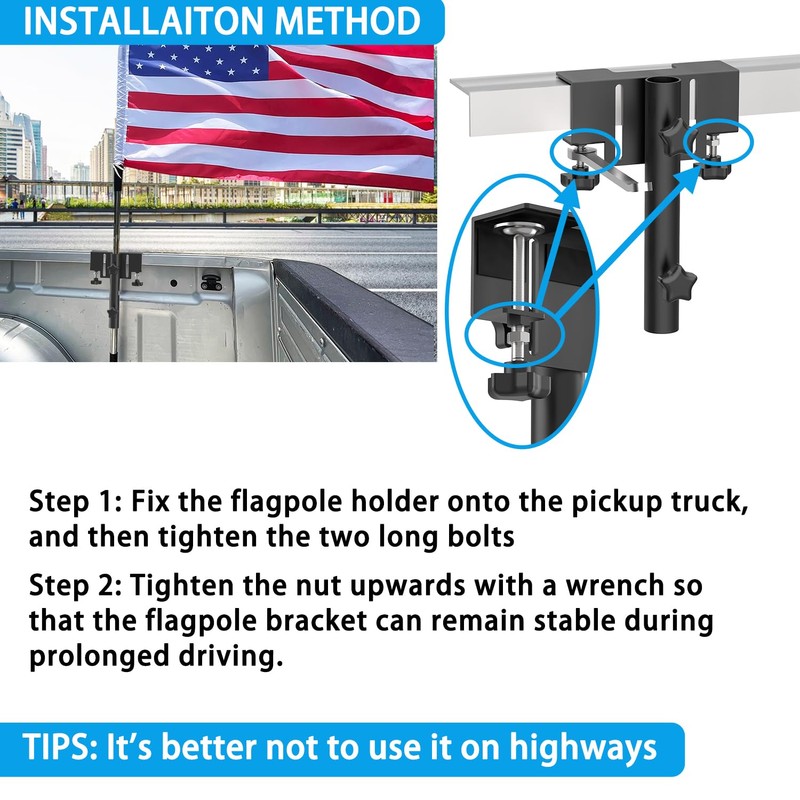 - Universal Truck Bed Rail Side Mount Flag Holder Kit