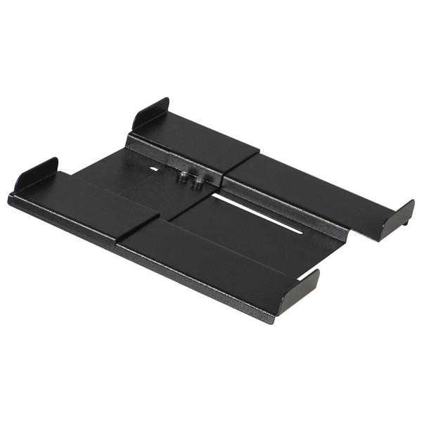 - Sliding rear clamp that securely locks your equipment in place