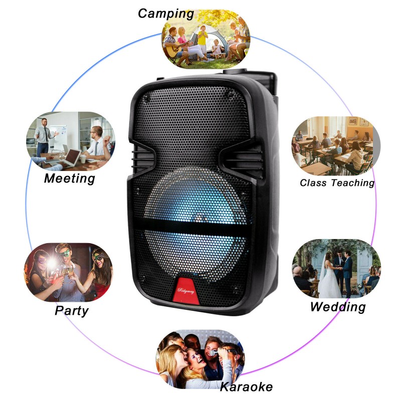 Universal Portable 8" 4400Watt Bluetooth FM Speaker Sound System Party Tailgate Mic Remote