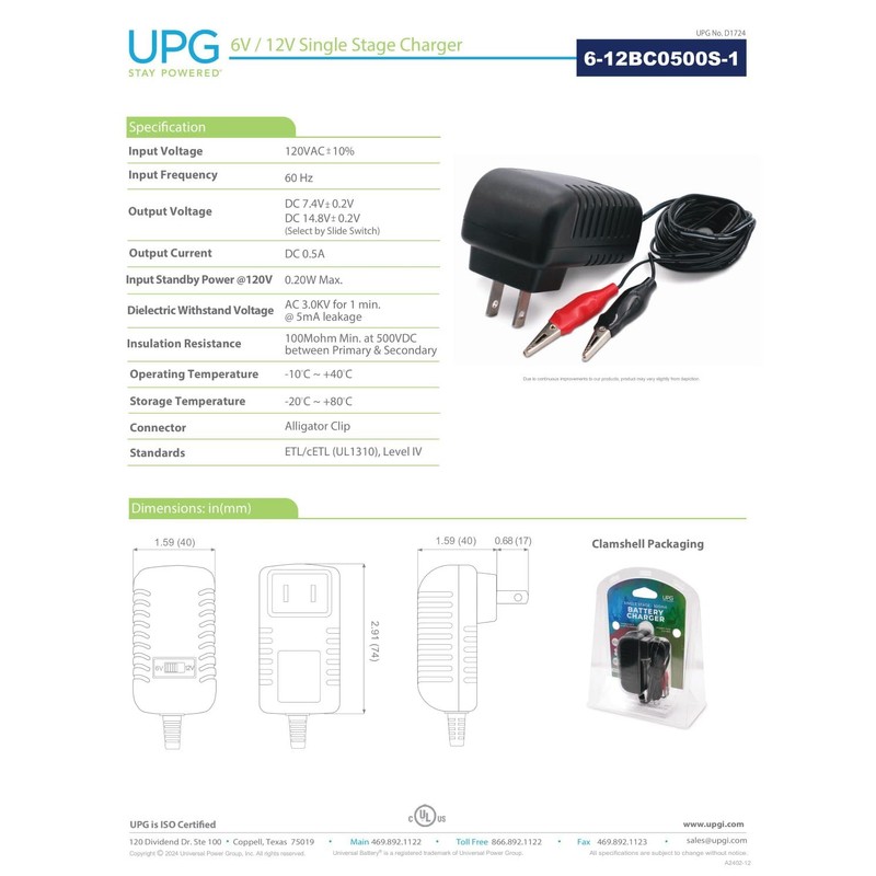 Universal Power Group 6 12 Volt Game Deer Feeder Battery Charger 6V / 12V (D1724EBALT4)