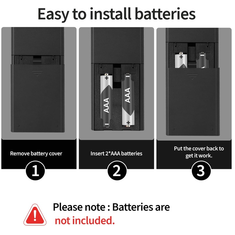- Easy to Use: Work right out of the box and no setup required. Just insert 2*AAA batteries and it will work with your TV. Note: 2 x AA batteries are not included.